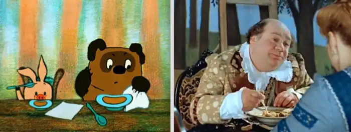 Винни Пух Фёдора Хитрука не только говорит голосом Евгения Леонова, но и внешне на него похож...