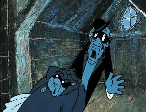 Конечно, мультфильм вышел в 1978 году, а фильм "Опасный возраст" (с Юозасом Будрайтисом в этом гриме) появился на три года позже, так что совпадение тут случайное. Может, его и вовсе нет, просто нам показалось... Как считаете, похожи эти папы или не похожи?
