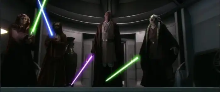 В мире «Звёздных войн» есть простые правила, которые касаются световых мечей. У плохих парней они красные, а у хороших — зелёные или голубые. Одно из исключений — это герой Сэмюэла Л. Джексона, чей меч привлекает внимание своим фиолетовым цветом. Актёр просто попросил режиссёра сделать ему меч такого цвета, а тот согласился, хоть и не без колебаний.