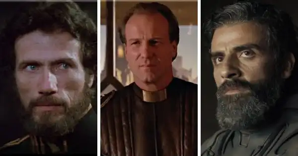 "Дюна" - это культовый роман Фрэнка Герберта, который удостоился премии Хьюго и Небьюла, а также покорил сердца миллионов читателей. В 1984 году за экранизацию взялся легендарный визионер и режиссер Дэвид Линч. Однако, многострадальные съемки не увенчались успехом и фильм провалился. Даже самому Линчу не понравился конечный результат, ибо окончательная версия "Дюны" была создана без его участия. Хотя многие киноманы считают фильм недооценённым шедевром. Затем в 2000 году последовал мини-сериал, который получил более высокие оценки. Но экранизация также не сорвала оваций. Ну а режиссером третьей экранизации стал Дени Вильнёв. Сейчас фильм показывают во всех кинотеатрах и, судя по всему, эта работа получит всевозможные престижные кинонаграды. А пока бронируете билеты в кино, давайте поглядим, как выглядели персонажи "Дюны" в трёх разных экранизациях этого романа.