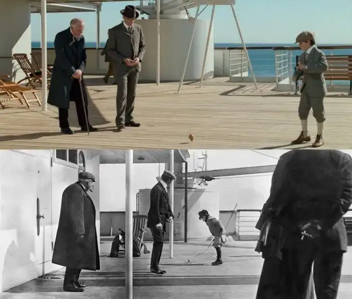 В одной из сцен "Титаника" мальчик крутит волчок на палубе. Эта же сцена изображена на снимке с настоящего Титаника, который был сделан 11 апреля 1912 года