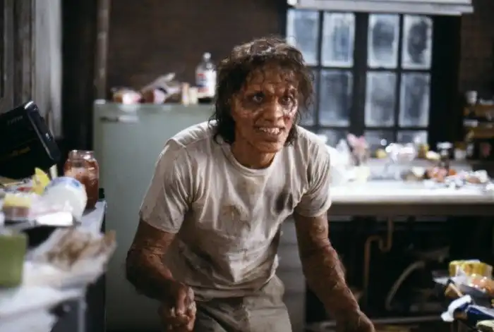 Учёный Сет Брандл работает над осуществлением телепортации живых существ и предметов, но из-за ошибки во время одного из экспериментов начал превращаться в муху. Однако не в маленькую и безобидную, а в человекоподобную и созданную в характерной (то есть кошмарной) стилистике фильмов 80-х годов.Несмотря на безбашенность идеи, у фильма даже есть «Оскар», но, разумеется, не за сценарий, а за грим.