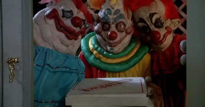 Это не учебная тревога, на Землю вновь напали! На этот раз угрозой для простых людей стали инопланетяне. Так уж получилось, что пришельцы питаются человеческими телами, а сами они выглядят как клоуны. Страшнючие клоуны, выполненные в уже знакомой нам стилистике 80-х годов!