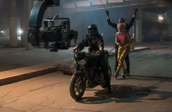 Марго Робби на съемочной площадке картины «Хищные птицы: Потрясающая история Харли Квинн»