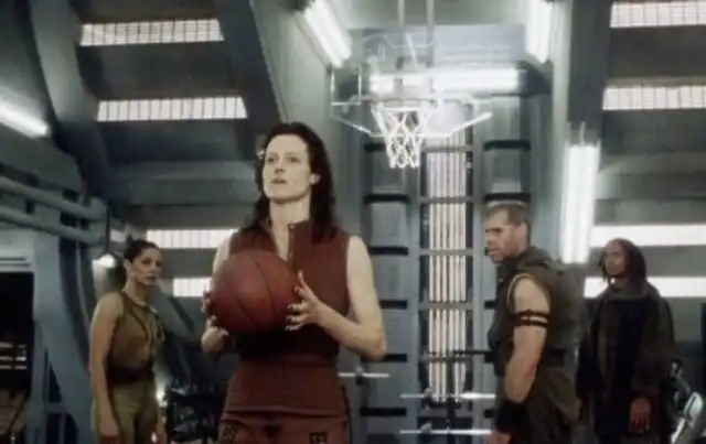 10. В одной из сцен фильма "Чужой: Воскрешение" Сигурни Уивер бросает баскетбольный мяч в корзину, стоя далеко от нее и повернувшись спиной. Чтобы выполнить этот трюк, Уивер 3 недели отрабатывала его под руководством тренера по баскетболу