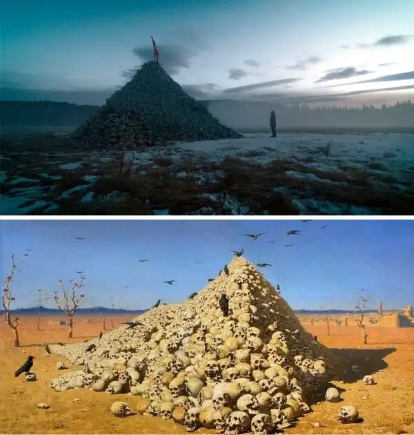 «Выживший», Алехандро Гонсалес Иньярриту, 2015 — «Апофеоз войны», Василий Верещагин, 1871