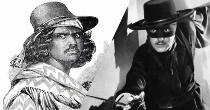 Наверняка все знакомы с таким персонажем, как Зорро – бездельнике, превращающемся по ночам в хитрого мстителя в чёрной маске. Отчасти его прототипом стал мексиканский главарь банды Хоакин Муррьета, который во времена золотой лихорадки боролся с произволом англосаксов на территории отобранной Калифорнии.