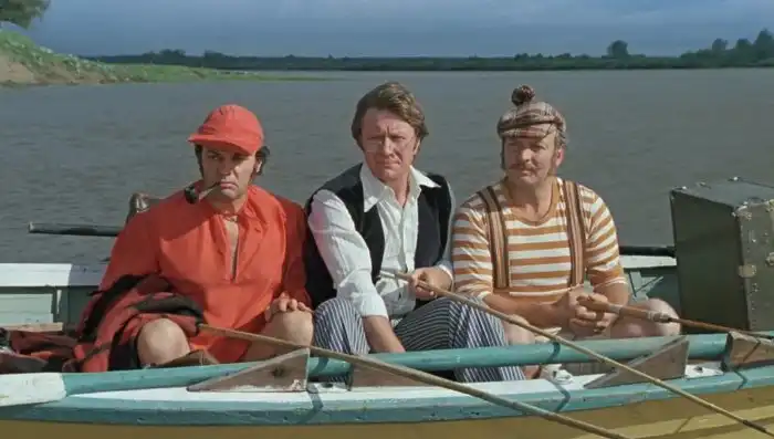 В картине «Трое в лодке, не считая собаки» присутствует момент погони за сомом, снятым крупным планом. Это сделано для того, чтобы зритель не обратил внимания, что рыба изготовлена из поролона, который быстро истрепался, и его вовсе заменили бревном.