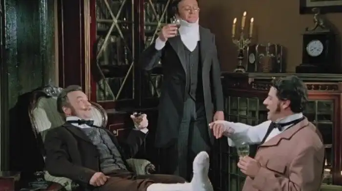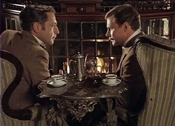 Однако есть в этом фильме и другая, более интересная деталь: полосатые кресла и каминный экран, которые вы уже могли видеть в советском сериале о Шерлоке Холмсе.
