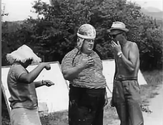 Перерыв между съёмками. Юрий Никулин, Леонид Гайдай, Евгений Моргунов.