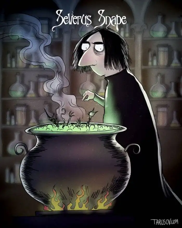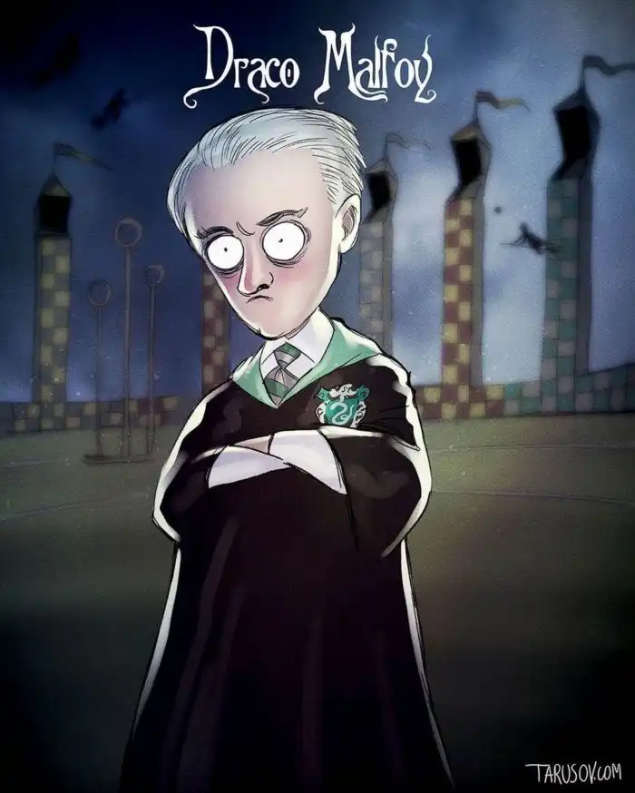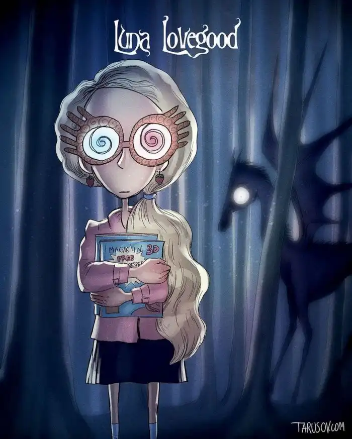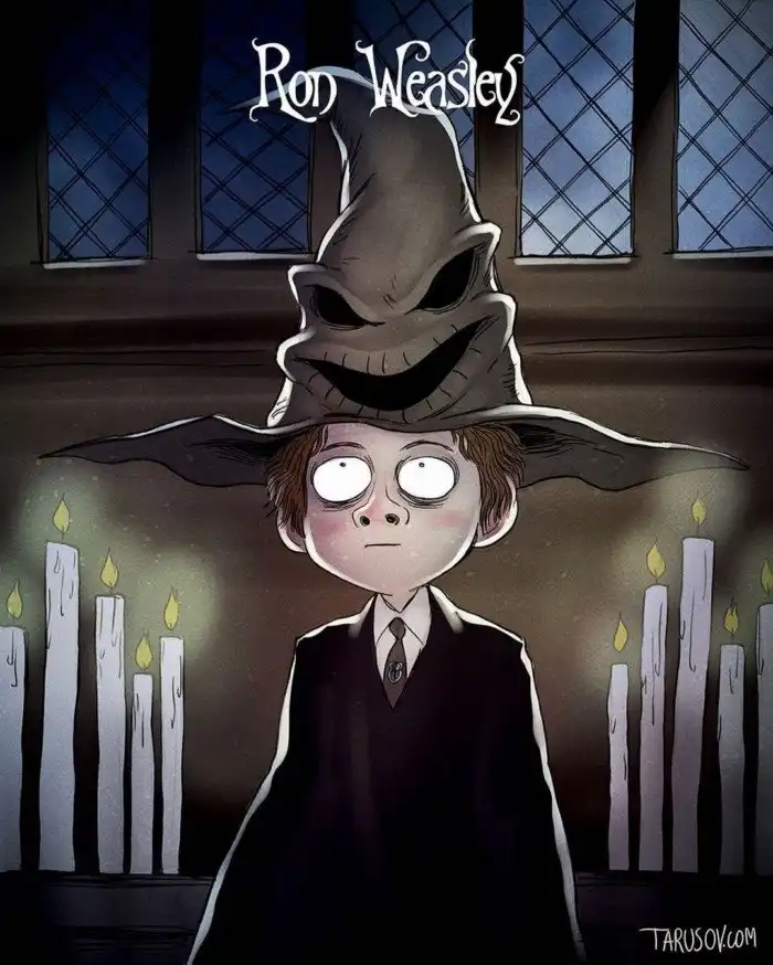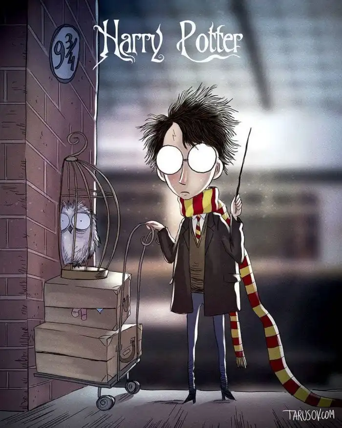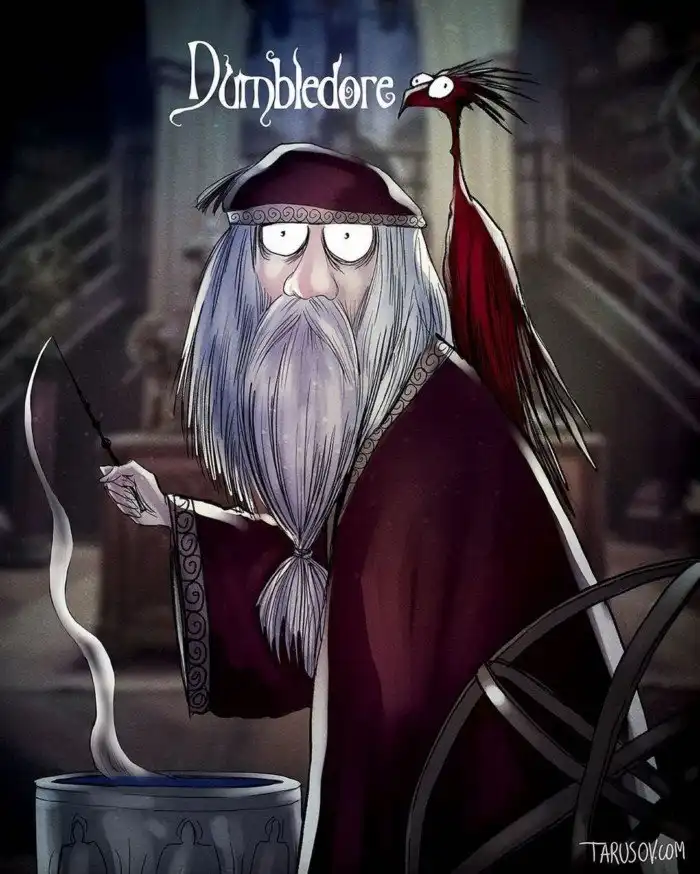 Художник Андрей Тарусов решил представить, как выглядели бы персонажи из серии книг и фильмов о Гарри Поттера, если бы за них взялся известный режиссёр и мультипликатор Тим Бёртон.