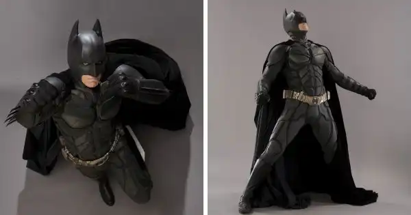 Кристиан Бэйл изо всех сил пытается продемонстрировать мощь Бэмена и сложность этого персонажа. Согласитесь, без противников и в просторной фотостудии это выглядит довольно забавно.