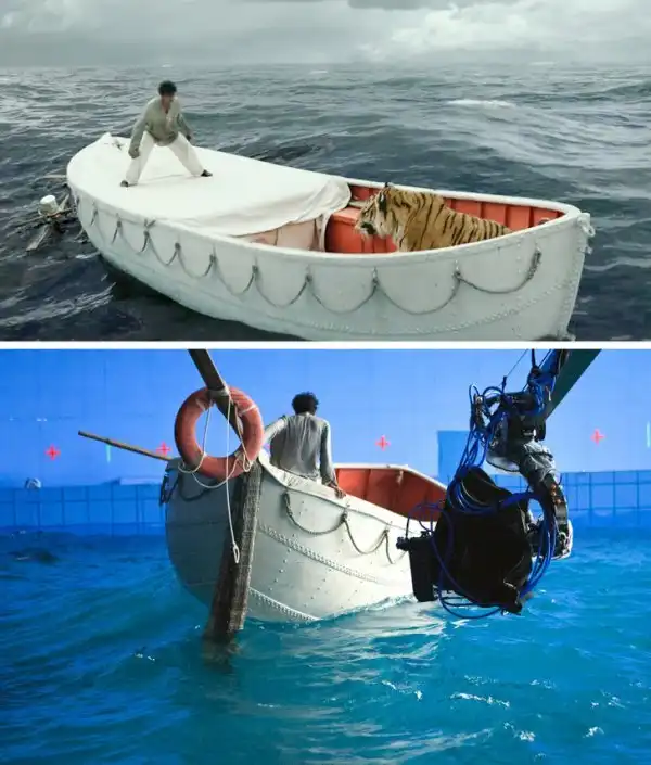 Если вы заглянете за кадры фильма «Жизнь Пи», то увидите, что некоторые водные сцены снимались в помещении