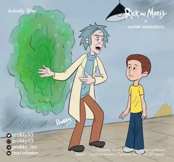 Пользователь в Twitter под ником Прокки представил, как мог бы выглядеть мультсериал «Рик и Морти», если бы им занимались советские мультипликаторы.