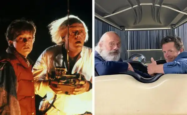 Майкл Джей Фокс (Марти Макфлай) и Кристофер Ллойд (доктор Эмметт Браун) сфотографировались в машине времени из фильма и на пару мгновений перенесли своих фанатов в прошлое.
