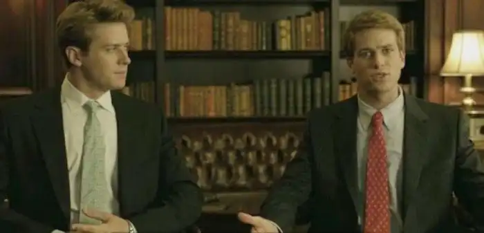 Братья, согласно сюжету, являются богатыми наследниками и привыкли все получать без возражений. А в фильме они судились с Марком Цукербергом за будущую золотую жилу.