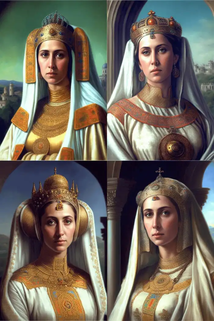 На помощь автору пришла популярная нейросеть Midjourney. Автор говорит, что точную эпоху на сгенерированных ей картинках установить невозможно: знания о Древней Руси она берёт из коллективного бессознательного. Получается некая сборная историческая солянка в которой смешались и Киевская Русь, и Российская империя. Видимо, это и есть общее представление о том, как должен выглядеть древнерусский стиль. А теперь посмотрим, как бы в нём смотрелись герои.