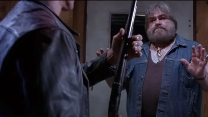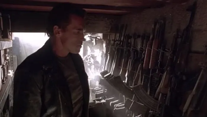 2. Терминатор направляется на бородатого мужичка, убирая при этом левую руку от дробовика. Но в следующем кадре, когда Т-800 показывают со спины, он снова убирает левую руку с дробовика.
