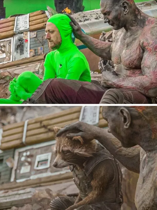 Многие любители кино не устают спорить о том, что же лучше: визуальные эффекты или настоящие декорации, грим и пиротехника. В действительности, такие дискуссии не имеют смысла, ведь ничто не мешает использовать и то и то. Но, пожалуй, все согласятся, что современные технологии помогают стирать грань между выдумкой и реальностью. Последние фантастические фильмы действительно поражают своей графикой и спецэффектами. Получается так реалистично, что у молодых зрителей в итоге не остается никаких сомнений, что где-то в космосе летают "Стражи Галактики" с енотом "Ракетой" у штурвала. И важно отметить, что использование CGI и прочих технологий - это колоссальный труд огромной команды специалистов, который никак не уступает в сложности более традиционным методам съемки. Иной раз в этом можно убедиться, посмотрев подборку любопытных закадровых снимков, показывающих "секреты" съемочного процесса.
