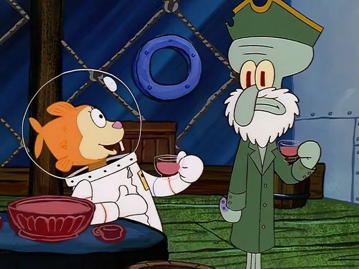 12. В хэллоуинском спецвыпуске мультсериала «Губка Боб Квадратные Штаны» Сэнди одевается как домашняя золотая рыбка в аквариуме, а Сквидвард Тентаклс «не понимает этого», потому что не знает, на что похожа жизнь вне моря