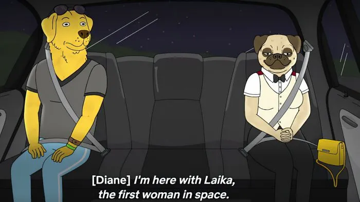 22. В 3 эпизоде 5 сезона «Всадника Боджека» в своем подкасте Дайан берет интервью у Лайки, «первой женщины в космосе». Речь о собаке, которая действительно была первым животным, выведенным на орбиту Земли