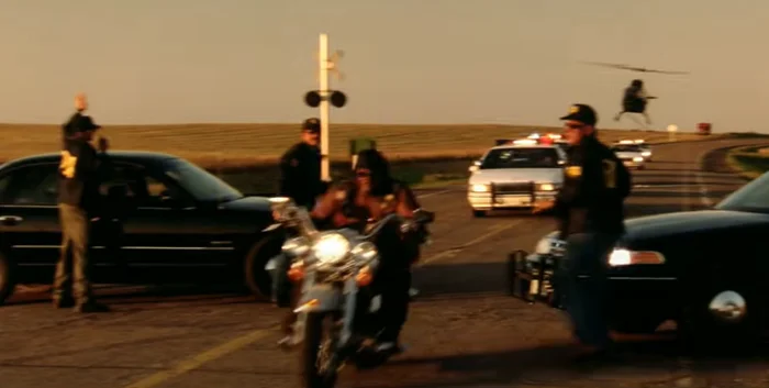 6. Федералы перегородили путь "Медведю" на мотоцикле таким образом, чтобы он смог через них проехать. Гениально!