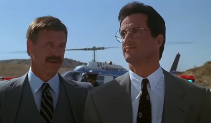 Ну и конечно же мы просто не могли не заметить, как Сталлоне говорит полицейскому, что Рэмбо по сравнению с ним просто сопляк. Я думаю, не стоит напоминать, кто именно сыграл роль Рэмбо в одноименном фильме.