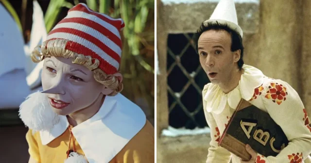 Здесь мы возьмём советский телефильм «Приключения Буратино» 1976 года, где главную роль сыграл Дмитрий Иосифов. Сравним его с итальянским «Пиноккио» 2002 года с 50-летним Роберто Бениньи в роли деревянного мальчика.