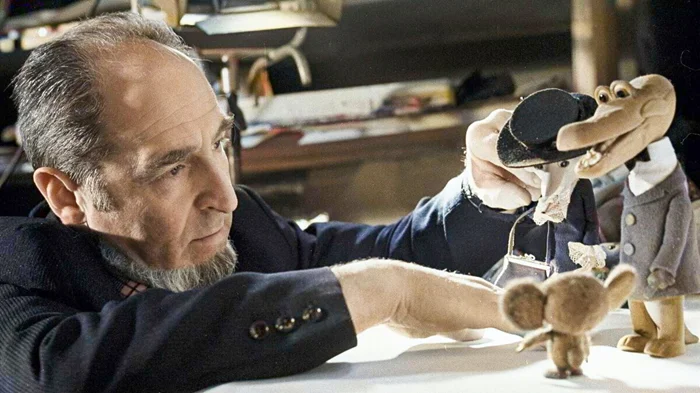 Художник-постановщик фильмов о Чебурашке Леонид Шварцман со своими героями, 1974 год.