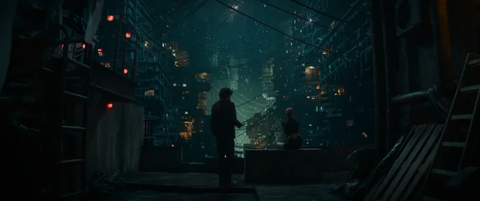 И ведь, при всей непохожести на оригинал, из таких вводных вполне можно выстроить интересный сеттинг, но у «Ста лет тому вперед» это просто не получается. При просмотре ощущается горькая ирония: создатели фильма, желая нагнать хайпа и сделать кассу на ностальгии по культовой классике, взяли в качестве первоисточника образцовую советскую фантастику, центральное место в которой занимал образ светлого будущего, и потерпели жестокое фиаско. Потому что с будущим сценаристу работать явно неудобно: раскрытие футуристического сеттинга, которое у Булычева занимало целую сюжетную арку, в новом фильме умещается в пару сцен, в основном диалоговых, а затем автор спешит перенести место действия из будущего в куда более интересное и удобное ему настоящее. Когда сюжетная необходимость снова требует переноса в 2124 год, герои перемещаются в явно более привычную автору «тёмную» версию будущего, мир мрачной киберпанковой тоталитарщины, в которой Земля, оккупированная космическими пиратами, превратилась в верфь для их великого флота… Вот только экспозиция и этой версии сеттинга умещается в пару предложений, которые я плюс-минус пересказал выше. Особо обращу внимание: в случае с обеими версиями будущего сценарист нарушает классический принцип «показывай, а не рассказывай». Экспозиция подается монологами и диалогами героев. Причина, как мне кажется, в том, что сценарист не знает, что в его мире будущего вообще показывать.
