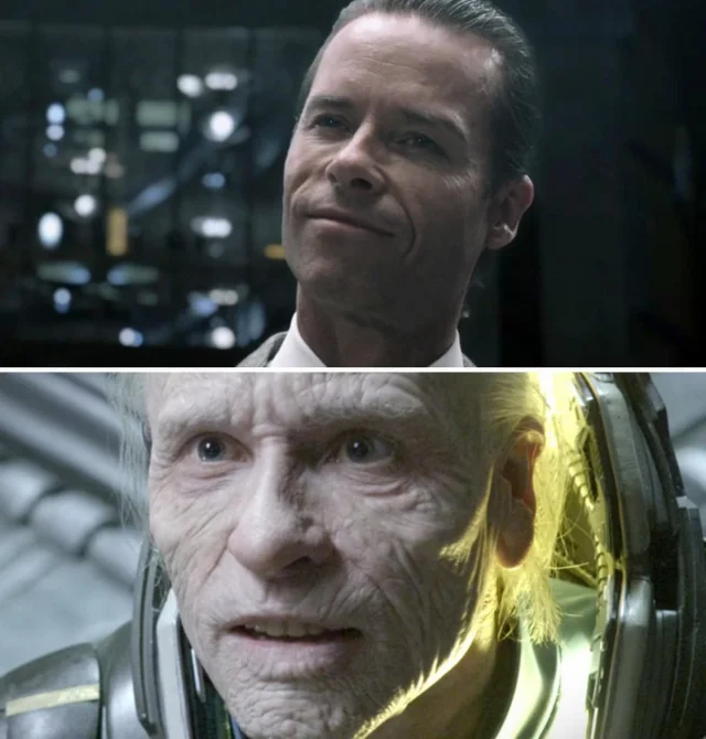 Гримёры часто забывают, что человеческая старость распространяется и на глаза, влияя на мимику. В этом фильме на крупных планах Гай Пирс выглядит не пожилым, а покрытым странными шрамами человеком средних лет.