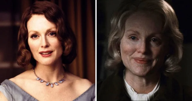 Ещё один фильм, где великолепный грим, который превратил Николь Кидман в совершенно другого человека, сочетался с неудачным состариванием. В случае с героиней Мур гримёры опять забыли, что старение лица это не только совокупность морщин. Показательно то, что у фильма 9 номинаций на «Оскар», среди которых нет категории «грим и причёски».