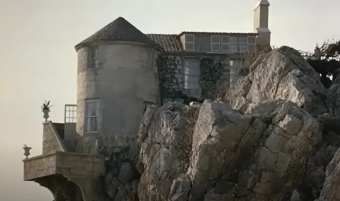 Саму же декорацию особняка построили на самом краю Аврориной скалы, что на южном береге Крыма. Для создания этой декорации были привлечены специалисты из ялтинской киностудии, которым приходилось возводить здание с помощью альпинистского снаряжения, ибо по другому построить декорацию на краю скалы было просто невозможно.