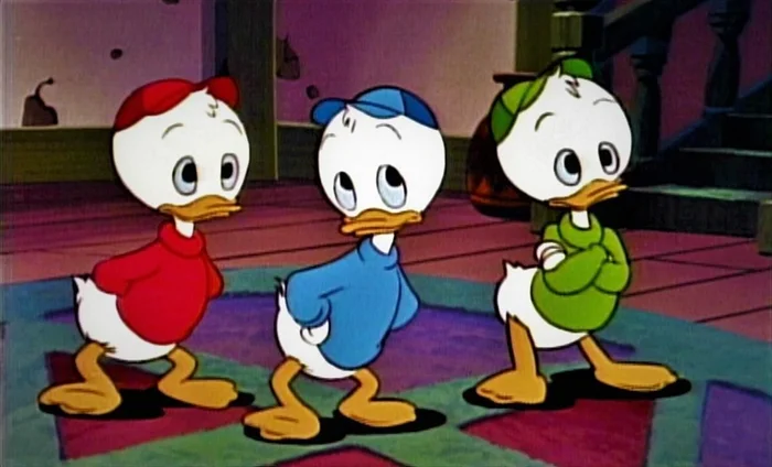 На скриншоте: Дилли (зелёный), Билли (красный) и Вилли (синий). Племянники Скруджа и Дональда. Сироты,оставленные на попечительство Дональда,но потом были отправленные Дональдом к Скруджу.Утята состоят в скаутском обществе Юных Сурков. В силу того, что утята являются близнецами, они носят кофточки и бейсболки соответствующих цветов, чтобы их различали. Это, наравне с чертами характера, подчёркивает индивидуальность каждого из мальчиков.