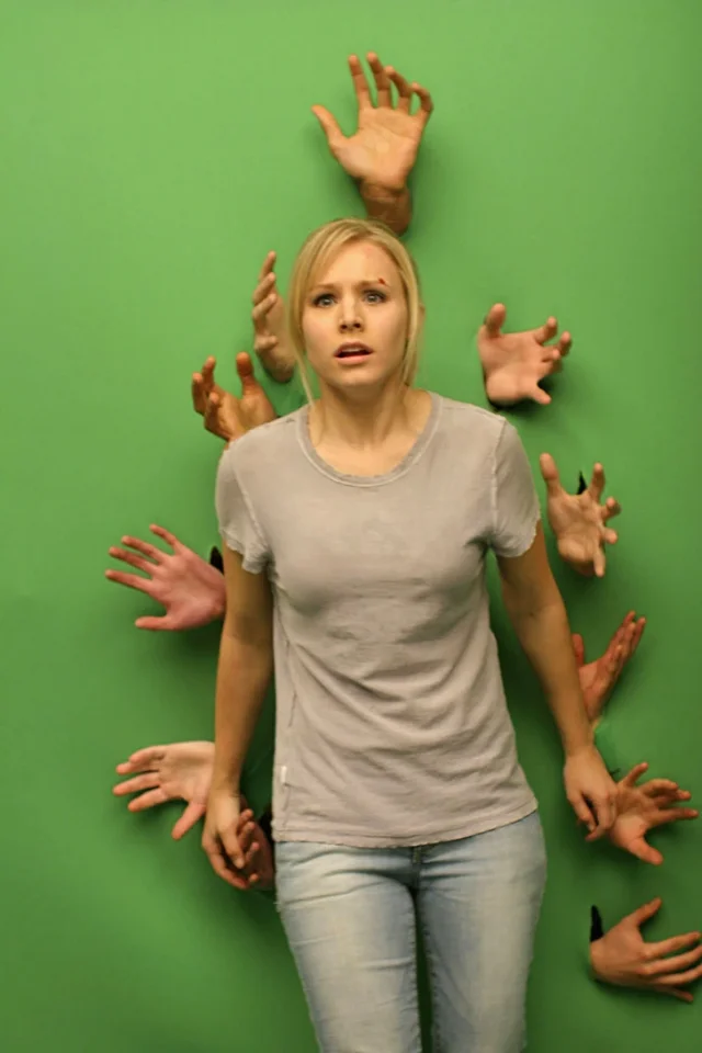 В реальности руки, тянущиеся к Кристен Белл в хорроре «Пульс», выглядели не менее устрашающе