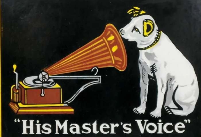 Скелет собаки возле граммофона - это также отсылка, но уже на британскую музыкальную торговую марку "Hit master's voice".
