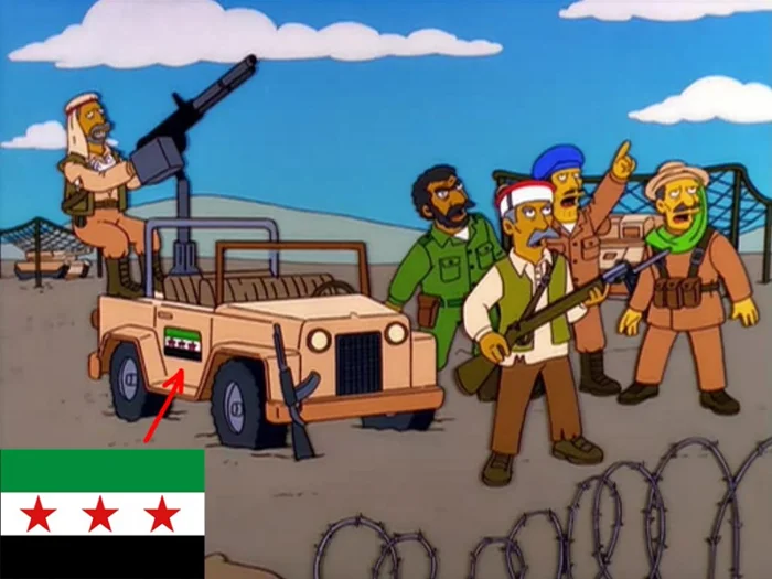 Сюжет клипа, созданного Бартом, и сцена с флагом сирийской оппозиции напоминают события, которые произошли во время войны в Сирии.