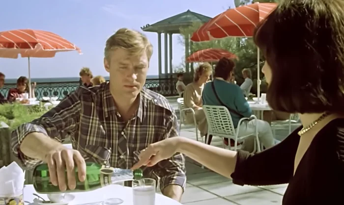 12. В сцене, когда Рита идет по набережной не было массовки. Мужчины, которые оборачивались в след красавицы были самые что ни на есть настоящие, то есть обычные прохожие. Так что в данной сцене на массовке точно смогли сэкономить.