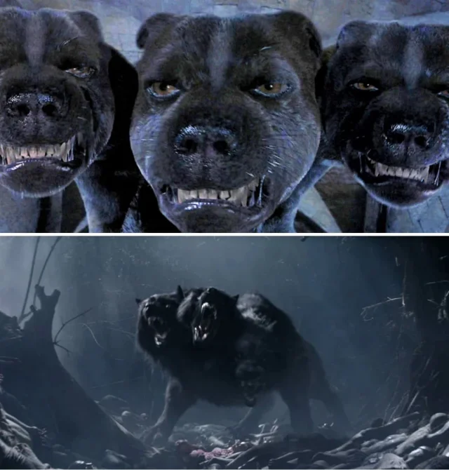 Как мы знаем, Пушок был хоть и очаровашкой, но вполне классическим цербером. Сравнивать его с собратом из фильма «Цербер» (2005) мы не стали, так как там очень уж всё плохо нарисовано. Зато вот такой суровый трёхглавый пёс атаковал Дуэйна Джонсона в фильме «Геракл» (2014).
