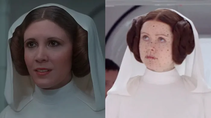 Тем не менее, еще до этого вышел фильм "Звездные войны. Изгой 1", где также появилась принцесса Лея Органа образца 1977 года. Сама Кэрри Фишер в этом фильме не снималась. Вместо нее роль принцессы исполнила Ингвильд Дейла с прикрепленными к лицу датчиками. Ну а дальше (как обычно) с помощью компьютерных эффектов на нее было наложено лицо молодой Кэрри Фишер.