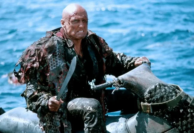 Один из самых больших кассовых провалов в истории кино, а по совместительству – отличный развлекательный фильм с заделом на весьма интересный сеттинг) Безумный Макс на воде мог бы вдохнуть новую жизнь в жанр постапокалипсиса. Но увы, угодил в производственный ад и пососал писос в прокате, от чего навеки угас едва загоревшись. Но сам-то фильм при этом весьма неплохой) Бескрайнее синее море, эстетика бомжацкого стимпанка, ну и великолепный главный злодей, чья гнусная лысая рожа удостоилась чести быть моей аватаркой на Пикабу)