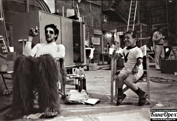 Чубакка (Питер Мэйхью) и R2-D2 (Кенни Бейкер) в перерыве между войнами.