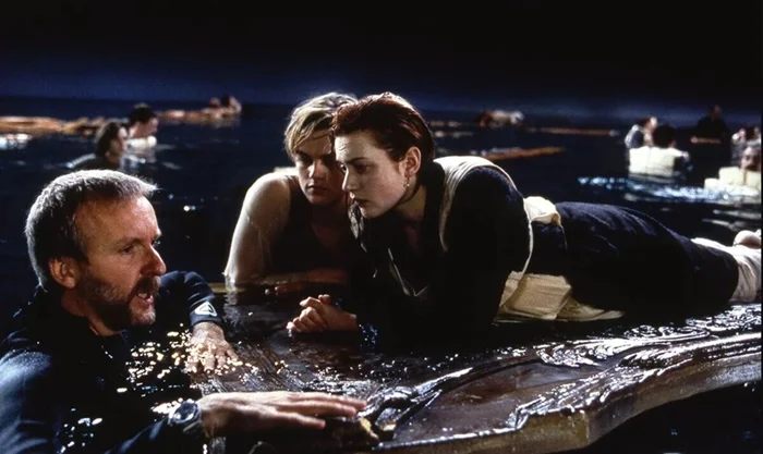 21-летняя Уинслет сидит в черном пальто и белом спасательном жилете, который ее героиня надела перед погружением в ледяную Атлантику в конце фильма и какой-то пацан