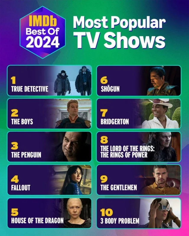 IMDb представил рейтинг самых популярных фильмов и сериалов 2024 года
