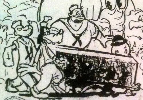 Некоторые персонажи, которых планировали включить в фильм, тоже так и не дошли до финальной версии. Например, по раскадровкам видно, что изначально должен был появиться моряк Попай, который тусовался бы с Гуфи. А у судьи Рока планировалась своя банда мультяшных злодеев, включая стервятника, который сидел бы у него на плече.