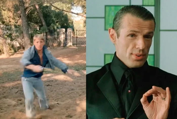 8. Многим зрителям актер Ламбер Вильсон известен по серии фильмов "Матрица", где он сыграл Меровингена. А начинал актер именно с фильма "Жандарм и инопланетяне", где он сыграл одного из инопланетян, который как раз так и уничтожил ресторан, о котором я упоминал ранее.