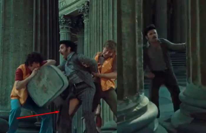 6. Во время драки за чемодан (в котором была взрывчатка) у Розарио Огро рвутся штаны. Но когда герои убегают, а Мафиозо встречает героя Евстигнеева, его штаны почему-то уже целы.