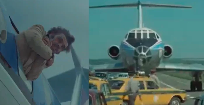 14. Мафиозо выбивает иллюминатор и застревает в нем, но во время посадки его не видно. Левая сторона самолета остается чистой, и Розарио Огро появляется только тогда, когда к нему подходит медицинская бригада.