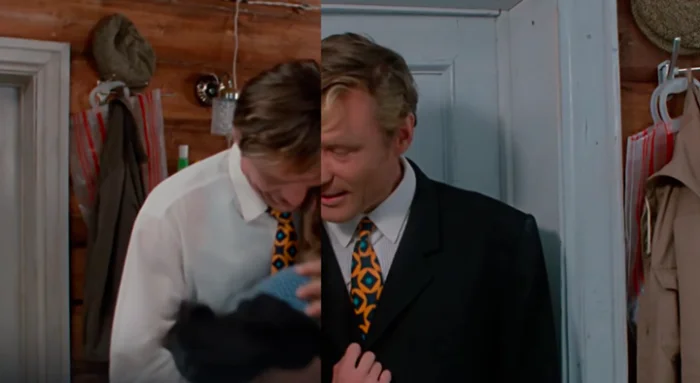 10. И, конечно, нельзя не упомянуть о киноляпе с проводами Василия. В этой сцене возле двери на стене висит одна куртка. Но когда кадр меняется и Оля подходит попрощаться с папой, на стене уже другая куртка. Это неудивительно, поскольку сцены снимались в разных местах, и всего не учтешь.
