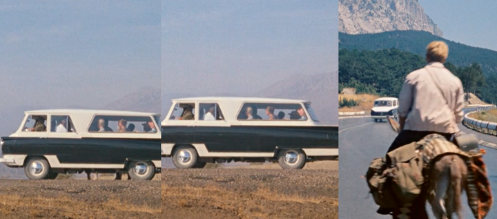 14. В финальной сцене Шурик, Нина и, видимо, осел, залезают в микроавтобус. Ноги всех троих исчезают, а затем показывают, как автобус едет, а за ним на осле едет Шурик.